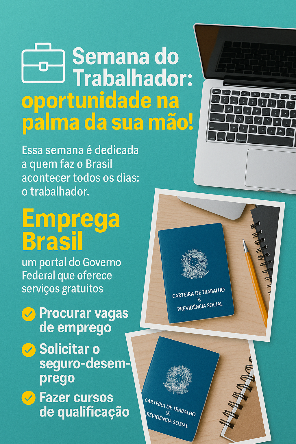 Essa semana é dedicada a quem faz o Brasil acontecer todos os dias: o trabalhador. E nada mais justo do que compartilhar algo que pode abrir portas pra muita gente.